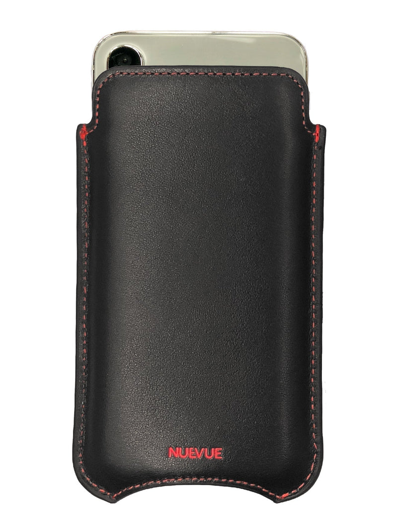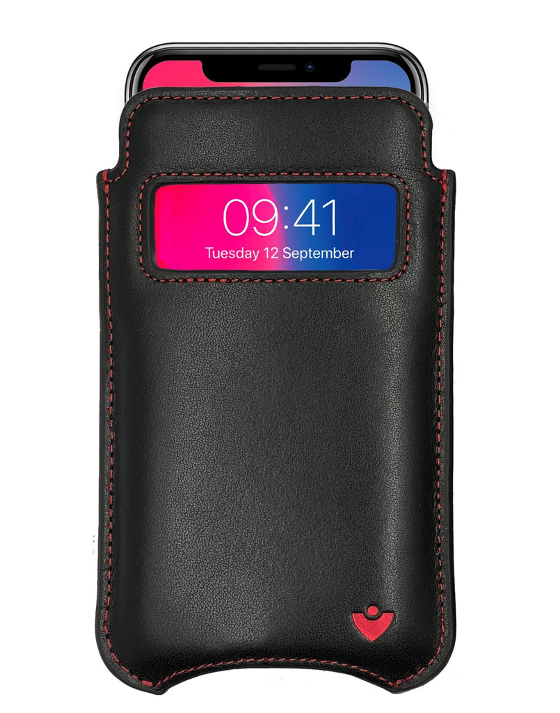 Apple iPhone 16 / 16 Pro Black/Red Leather Case with NueVue Patented Antimicrobial, Germ Fighting and Screen Cleaning Technology