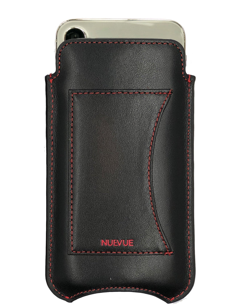 Apple iPhone 16 / 16 Pro Black/Red Leather Wallet Case with NueVue Patented Antimicrobial, Germ Fighting and Screen Cleaning Technology