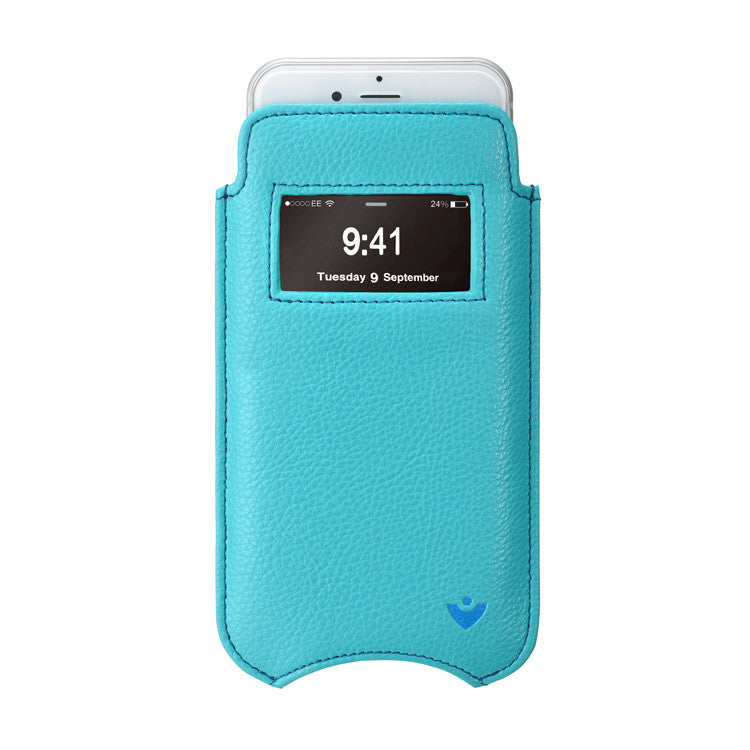 for Apple iPhone 6/6s Pouch Wallet Case | Blue Vegan Leather | Screen Cleaning Sanitizing Lining | Smart Window