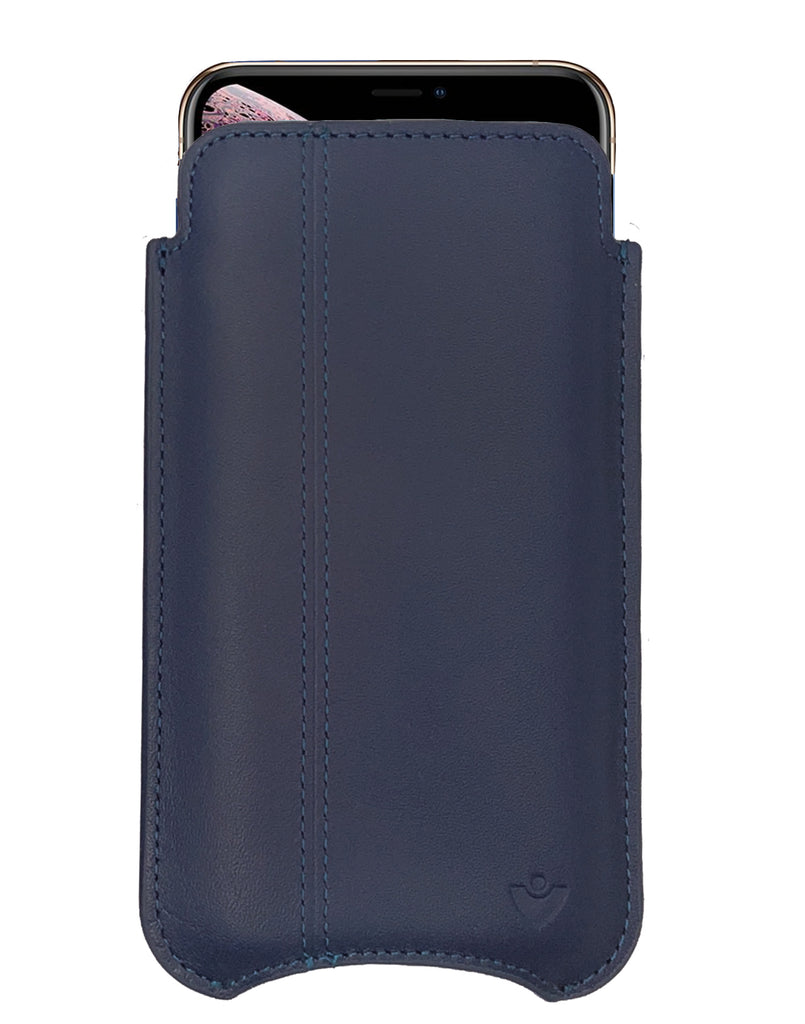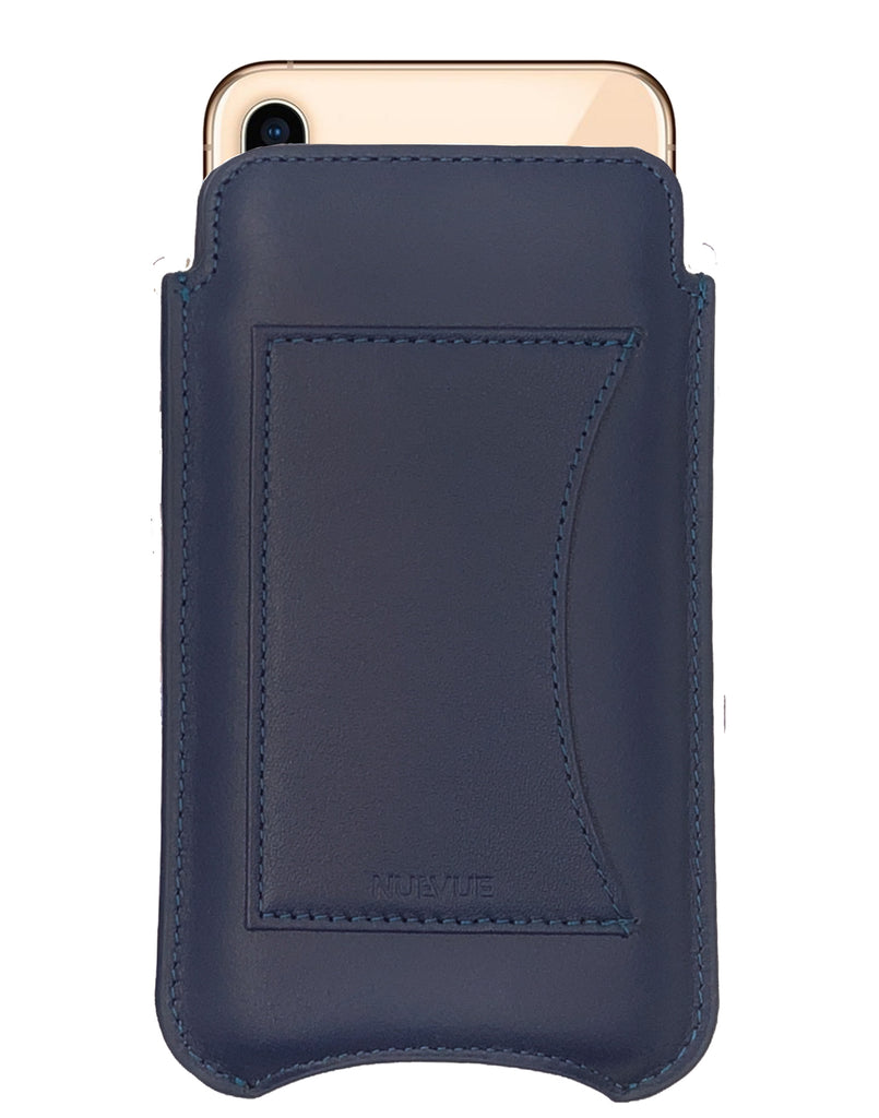 NueVue iPhone 11 Pro Max and iPhone Xs Max Wallet Case Napa Leather | Blue | Sanitizing Screen Cleaning Case