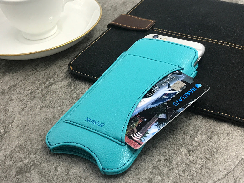 NueVue iPhone 11 Pro Max and iPhone Xs Max Wallet Case Faux Leather | Teal Blue | Sanitizing Screen Cleaning