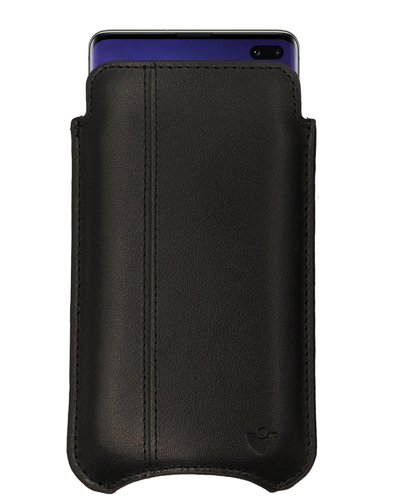 You'll love this Pirate Black genuine USA Napa leather Samsung Galaxy S10+ phone case.