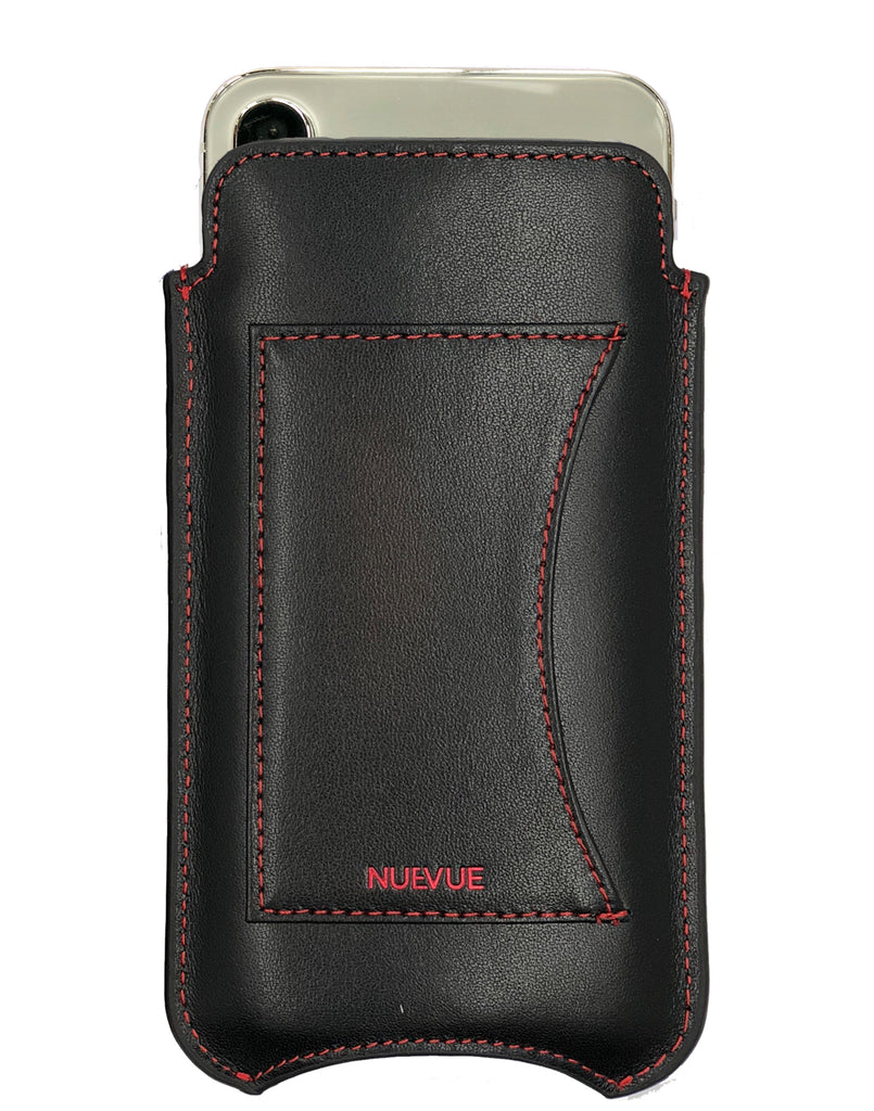 iPhone 13 / 13 Pro Black/Red Leather Wallet Case with NueVue Patented Antimicrobial, Germ Fighting and Screen Cleaning Technology