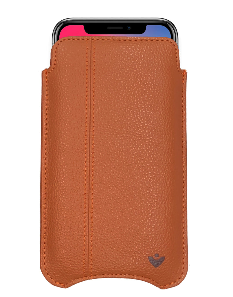 iPhone 13 / iPhone 13 Pro Tan Faux Leather Case with NueVue Patented Antimicrobial, Germ Fighting and Screen Cleaning Technology