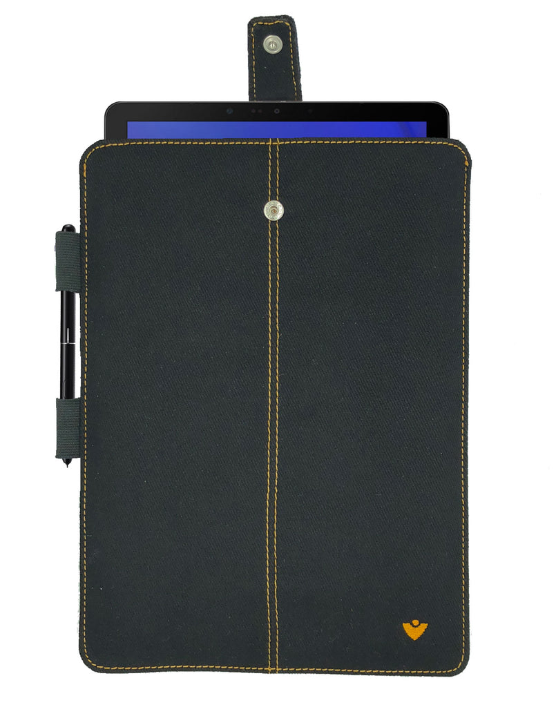 This beautifully handcrafted Black Cotton Twill case for the Samsung Galaxy Tab S model, is designed to protect your tablet from the knocks and bangs of everyday life, and avoid damage to that all important, expensive to repair, screen.