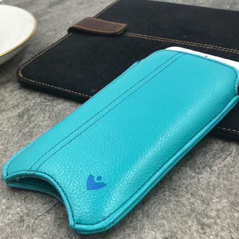 Apple iPhone 14 Pro Max Wallet Case in Teal Blue Vegan Leather | Screen Cleaning Sanitizing Lining