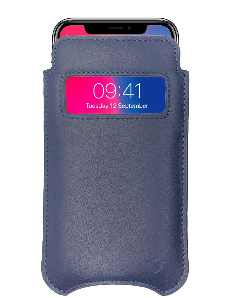 Apple iPhone 15 / 15 Pro Blueberry Blue Leather Wallet Case with NueVue Patented Antimicrobial, Germ Fighting and Screen Cleaning Technology