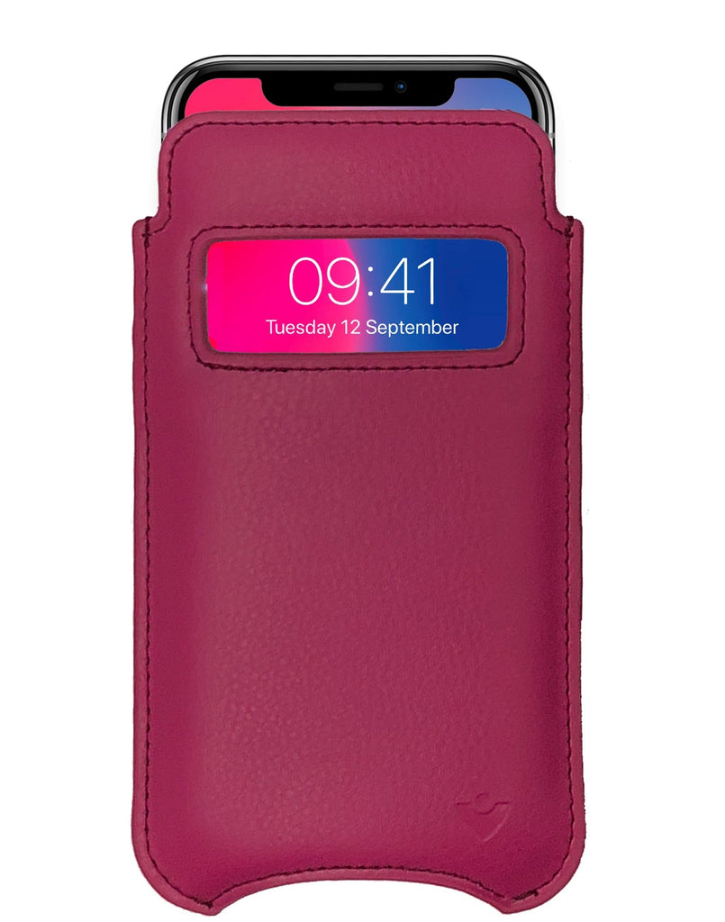Apple iPhone 15 / 15 Pro Samba Red Leather Case with NueVue Patented Antimicrobial, Germ Fighting and Screen Cleaning Technology