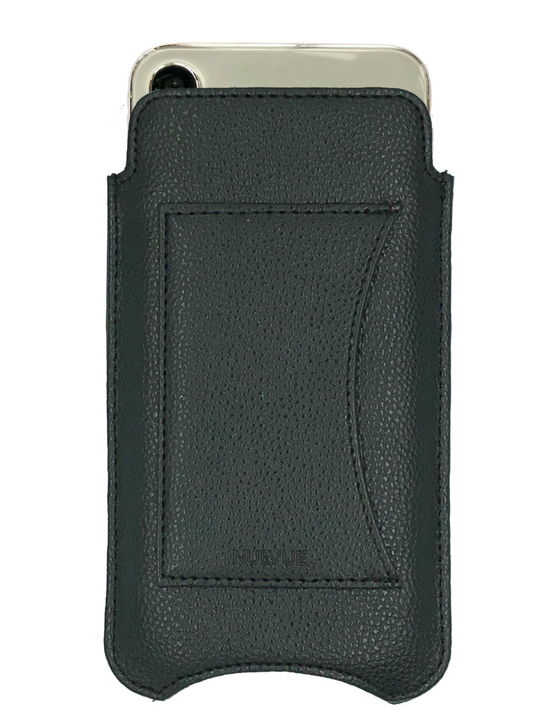Apple iPhone 16 / 16 Pro Pirate Black Faux Leather Wallet Case with NueVue Patented Antimicrobial, Germ Fighting and Screen Cleaning Technology