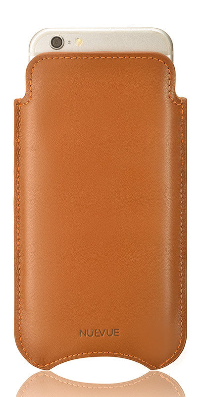 Apple iPhone 16 Pro Max Sleeve Case | Saddle Brown Leather | Screen Cleaning Sanitizing Lining | Smart Window