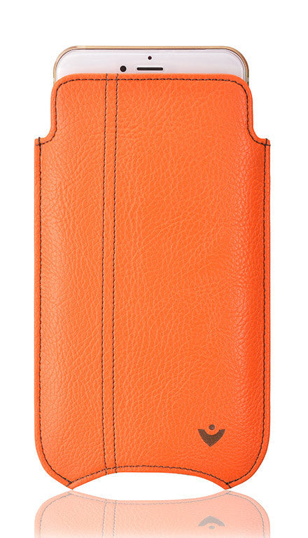 iPhone 8 / 7 Case in Flame Orange Vegan Leather | Screen Cleaning Sanitizing Lining.