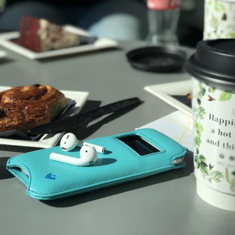 iPhone 8 / 7 Wallet Case | Teal Blue Vegan Leather | Screen Cleaning Sanitizing Lining | smart window
